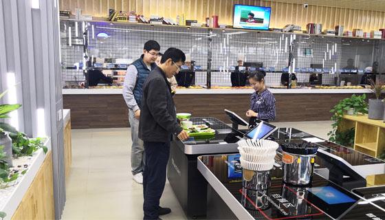满客宝智慧食堂在该校美食广场放置12台智能结算台。师生就餐进入菜品自选区,选餐完毕,将餐品放到自动结算台,结算区自动识别餐盘底部的芯片,并统计数量和整单金额,完全自动化结算,无需人工干预。