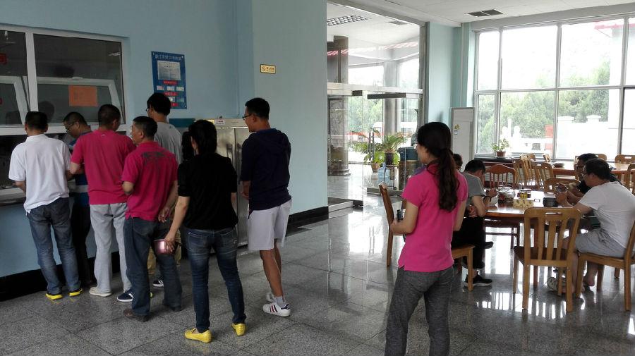 国家新闻出版广电总局六九四台于2016年5月顺利实施应用满客宝智慧食堂,图为就餐高峰时段员工整齐有序地排队取餐。