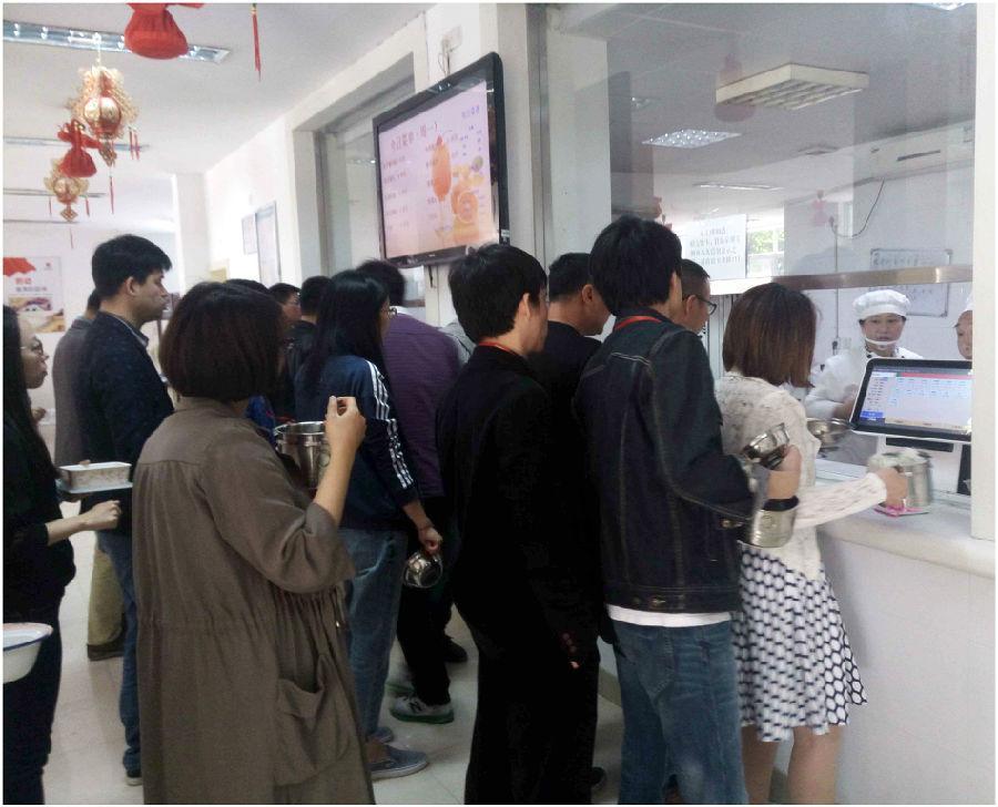 浙江中通通信公司员工通过乐订餐(手机app)、微信、智能双屏卧式售饭终端进行在线订餐,分散了集中排队选餐的时间,提升了就餐效率;系统根据预订数据反算出具体的原材料用量,实现精准备餐,有效避免了备餐不足或做多浪费现象;系统自动统计食堂运营的各项数据,并生成报表,避免人工统计产生的漏洞,实现了信息化管理。