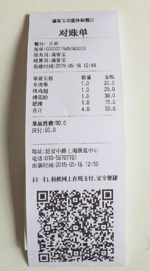 此次展会上满客宝展示的功能亮点之一——“扫码支付”备受关注,满客宝齐全的功能背后,揉合了时下最流行的二维码元素,此举无论在餐厅管理还是顾客就餐方面均大大提高了效率和提升了用户体验。满客宝的“扫码”可以实现顾客自助点餐、预约排号、预定外卖以及在线支付,尤其在支付方面,为便于顾客支付、节省结账时间,满客宝贴心提供携带支付二维码的对账单,供到店就餐顾客结账时便捷进行扫码支付。