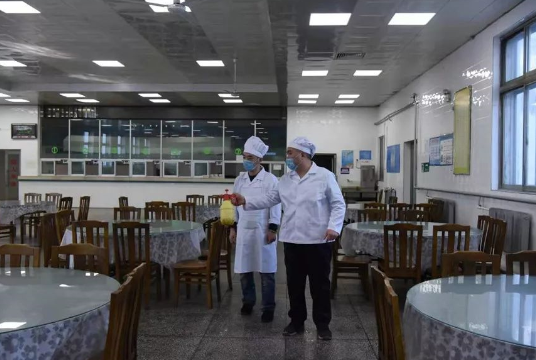 一方面组织食堂人员对新冠病毒肺炎的预防知识进行学习,提高职工防范意识;每天对食堂出勤职工进行体温监测并记录;要求所有食堂人员在岗时必须按标准严格佩戴口罩、勤洗手,做好个人防护;同时,认真执行“一日三消毒”,采用84液、来苏儿等消毒液对后厨及就餐大厅等场所进行仔细喷洒、消毒。