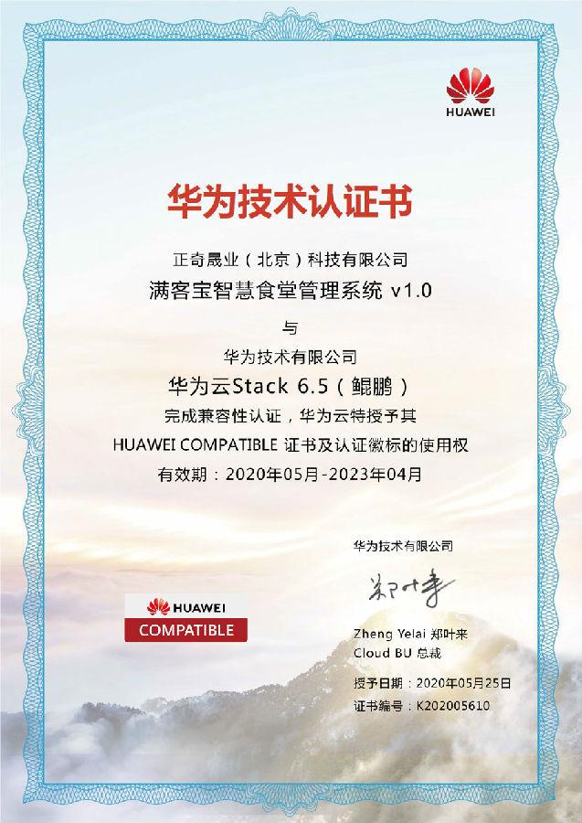 喜讯!热烈庆祝智慧食堂管理专家品牌——满客宝,获得华为技术认证徽标证书及使用权,成为华为认证ISV全球合作伙伴,与华为共创智慧食堂生态联合解决方案!
