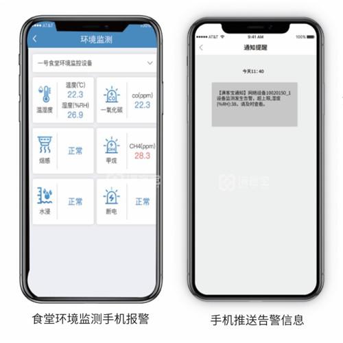 满客宝智慧食堂管理系统除了已经被广泛应用的明厨亮灶功能外,还拥有智能AI后厨行为监测,对违规吸烟、口罩佩戴、夜间老鼠进行识别;通过食堂环境监测,可在移动设备上实时查看温湿度、一氧化碳、燃气、水电数据,提示管理者及时处理,实现后厨远程监控。