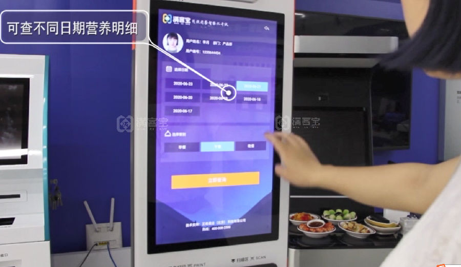 营养分析:员工可通过智能营养显示屏看到单个菜品的蛋白质、脂肪、碳水化合物、膳食纤维等营养数据,同时看到就餐后还可以看到以往每餐共获取的热量和营养摄入量,禁忌菜品搭配等信息,从而做到心中有数、合理控制。