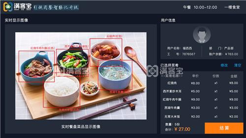 传统人工备餐、打餐流程复杂,耗费人工。满客宝智慧食堂打造智慧自选餐就餐模式,食堂后厨将制作好的菜品,盛放到带有芯片的餐具中,通过定价终端扫描定价后放入选餐区,就餐者可自由选取菜品放入托盘内,结算台将自动识别菜品信息及价格,并自动核算出整单价格。目前满客宝智慧食堂还推出智能AI视觉识别结算台,以菜品识别和餐盘识别进行价格核算,更大化减少重复定制餐具的成本。