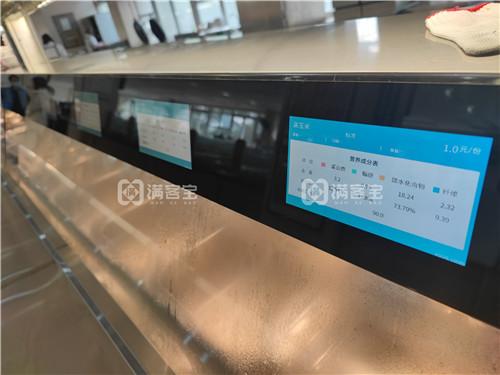 基于满客宝智慧食堂成熟的企事业单位智慧食堂解决方案,将电信食堂售餐模式转化为摆放式出售,自助式挑选。食堂工作人员按照提前设置好的智能餐具放置菜品,员工在选餐时,直接能看到智能显示屏上的菜品、价格、营养信息,营养信息包括蛋白质、碳水化合物、脂肪等数据,无需与食堂工作人员进行沟通,直接拿取想要的菜品即可。