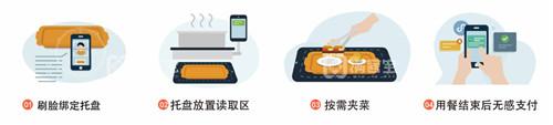 1、绑定托盘:就餐者拿取餐盘并放在读盘器上,刷脸完成餐盘与账户的绑定