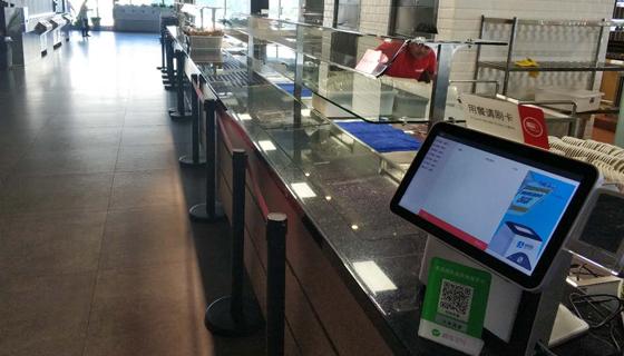 就餐者在食堂窗口运用二维码扫描器扫描手机上的订餐二维码,显示器直接显示出就餐者所订菜品,省去了排队选餐的时间,很有效的缓解了排队拥挤问题。