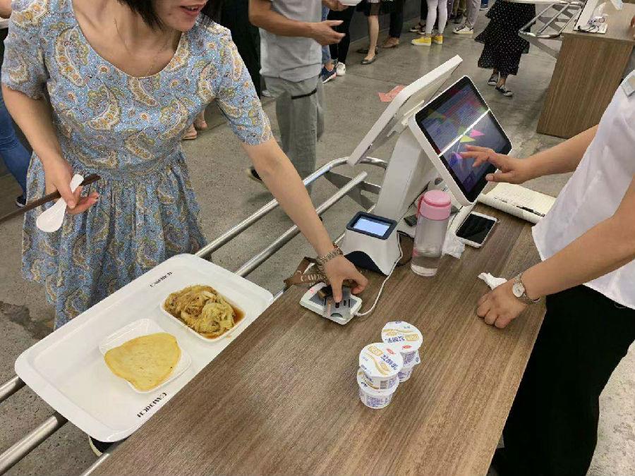 对于在企业食堂现在点餐就餐人员,只需在智慧食堂系统中选择心仪菜品,完成刷脸级即可完成支付,整个过程不超过3秒。没有完成人脸检测的员工,同时也可以通过以前的饭卡进行支付就餐。