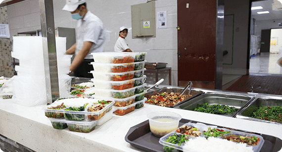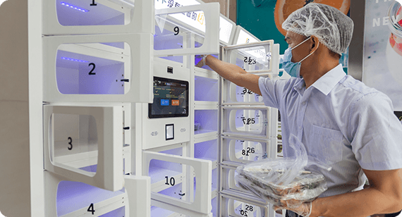 用户可通过档口自提、餐柜取餐、外卖派送等多种方式进行取餐,避免排队等候的时间。