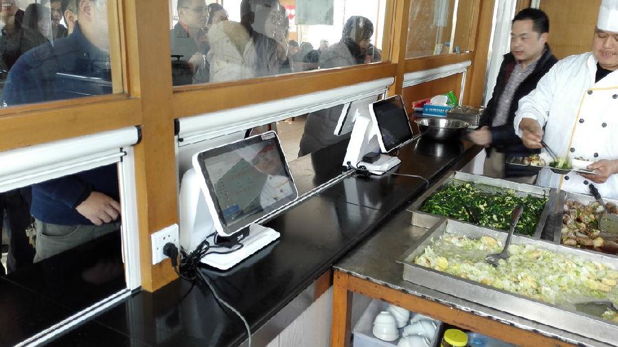 浙江省海盐县财政局食堂通过使用满客宝智慧食堂管理系统,职工可以提前在手机app、微信、网页或者使用智能双屏卧式售饭机上自助订餐,系统根据预订数据反算出具体的原材料用量,然后结合原材料现有库存数量,提供具体出库或者采购数据,从而实现食堂精准备餐和科学采购。有效避免了备餐不足或做多浪费和采购漏洞现象,同时食堂节省了经营成本。