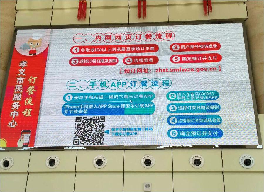 孝义市民服务中心食堂通过使用满客宝智慧食堂管理系统,就餐人员通过乐订餐(手机app)、微信等方式进行在线订餐,订餐后可在线支付,分散了集中排队选餐的时间,提升了就餐效率;系统根据预订数据反算出具体的原材料用量,实现精准备餐,有效避免了备餐不足或做多浪费现象;实现饭卡在线充值,让就餐人员充值更加快速、方便。