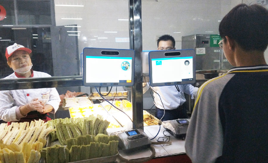 师生在学校食堂用餐,在选择完菜品后,只要对准打饭窗口一台带有人脸识别功能的“刷脸售饭机”,用餐人姓名、套餐类型、用餐金额自动出现在屏幕上,点确认即完成付款,同时,用餐教师或用餐学生家长手机上会收到一条就餐消费的短信。