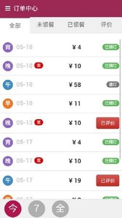 用户通过“我的订单”进入到“订单中心”,可查看到未领餐、已领餐、评价等订单情况。(未领餐的订单,在规定范围内可进行退单操作,对于已领餐的订单,可以进行评价操作。)