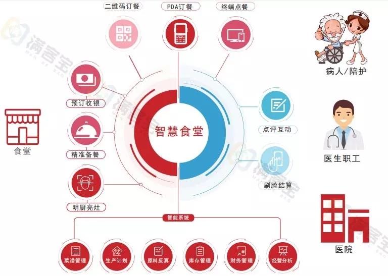 医院:多食堂/档口统一管理;财务准确统计与对账;进销存管理系统;随时把控食品安全;掌握病人信息定制营养餐。