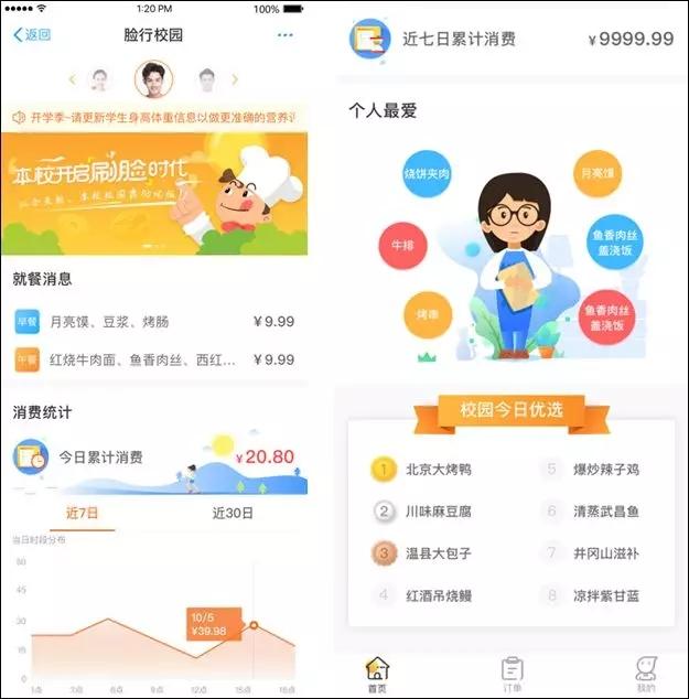 作为家长方,必然最关心孩子在学校吃得好不好、营养是否达标、饭菜卫不卫生的问题。而智慧食堂系统直接和家长的手机支付宝绑定使用,通过人脸采集&互动追踪的功能,能帮助孩子预定点餐、及时了解孩子点餐详情、追踪孩子的营养摄入情况,还能分析出孩子最爱吃的菜品排行,简直就是家长对孩子们舌尖上的“监管神器”!