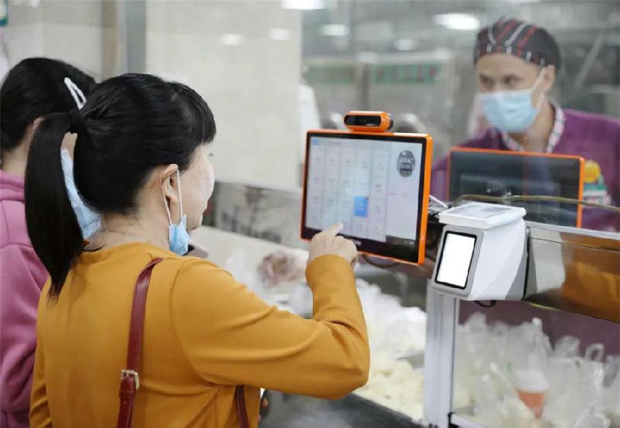 一台收银机外接人脸支付系统,适用于美食档口、特色档口、食堂超市等消费场所。以特色档口为例,收银员可以通过触摸点选、手动输入等方式确定小吃名称及价格。已经完成人脸绑定的用户,可用脸付账,无需再携带现金或卡片,支付更加便捷。