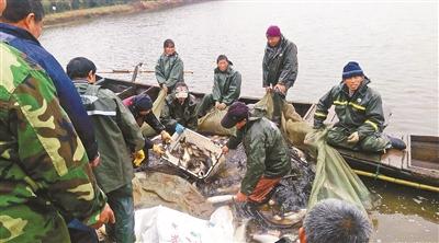 马总称,沁湖大约有200多亩,这批鱼是今年二三月份的时候往沁湖里投放的,当时投放的鱼苗达一万斤左右,均为白鲢、花鲢、草鱼等品种,“我们在水底种了水草,平时还配了一点鱼饲料。”
