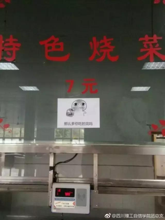 近日,四川理工学院食堂为劝导同学们遵守食堂规章制度,就运用这种方式做了一组生动形象的魔性告示牌!