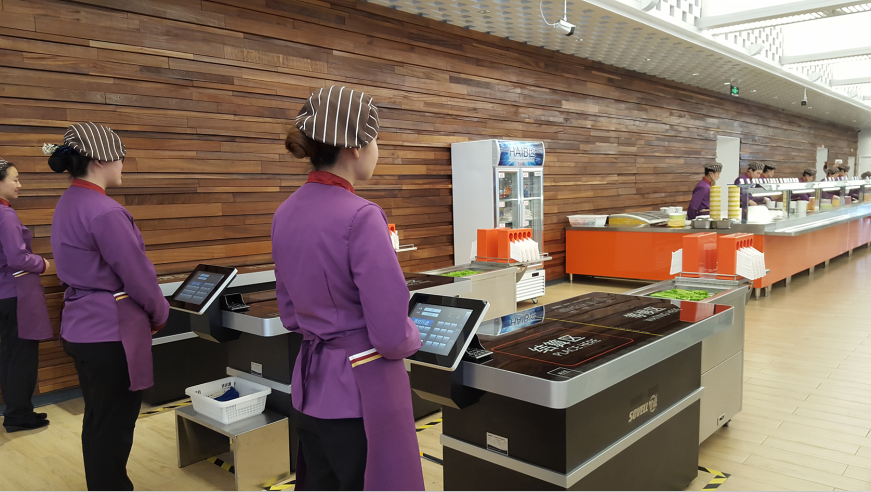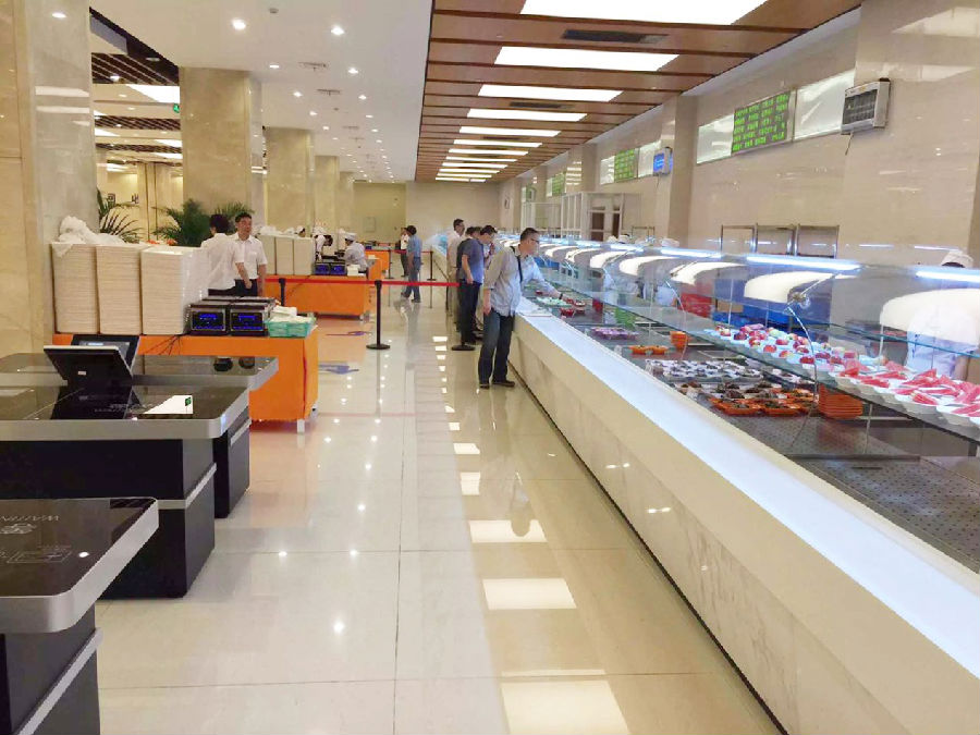 更加现代化一点的食堂不仅借鉴了明补+自选的模式,还采用了一套名为智盘的餐饮信息化系统,通过这套系统食堂可以实现快速结算、单品管理、集成式出品等高新功能,实现在杜绝浪费的基础上,提升就餐者的满意度和食堂管理信息化程度,从而打造集约化、智能化、人性化的现代食堂。