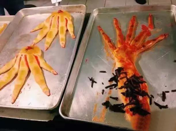 巫婆手指(草莓酱也能伪装成血),这带血的魔爪,刻画了一幅凄凄惨惨戚戚的画面,乍一看还真的怪吓人的