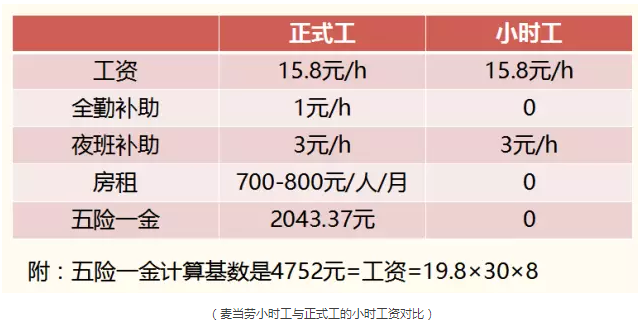 小时工不纳入编制,意味着小时工不享受餐企给提供的住宿、社保以及其他福利,特别是当下要求的正式员工也要缴纳五险一金。千万别小瞧了住宿和社保这两项,请看下边的例子: