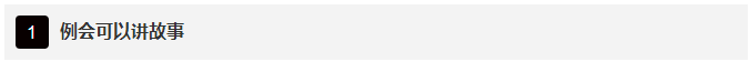 看过大咖分享的例会心得,是不是有种醍醐灌顶的感觉~原来,例会也可以这样开!除了k人,还可以讲故事~