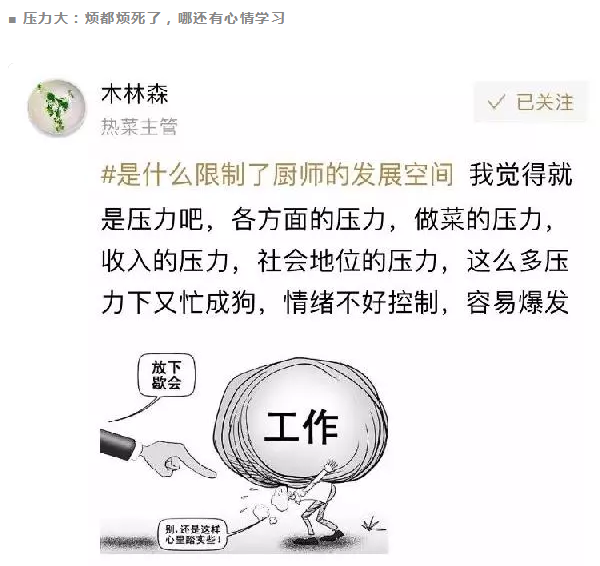 从师傅们的分享中,不难看出:没时间学习、团队不和谐、团餐行业动荡、心态不佳、生活压力大等成为了大家共同的困惑。