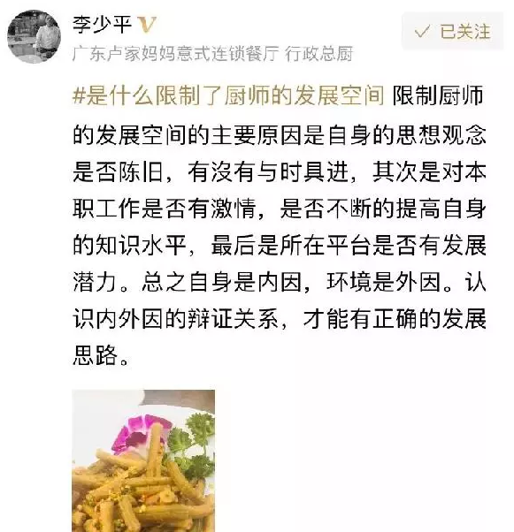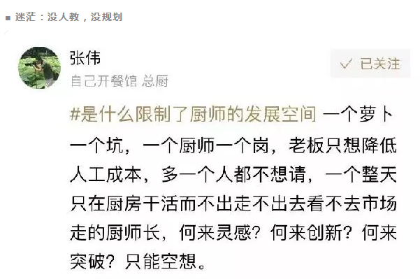 除了一些外部的客观条件的变化,值得开心的是,很多厨师也开始从自己的身上找寻问题。