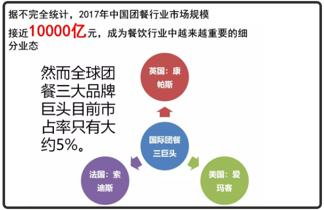 在全球目前达到百亿美元以上的餐企,只有快餐和团餐两种业态。世界500强中仅有三家餐饮企业,除麦当劳外,另外两家就是康帕斯(金巴斯)和索迪斯,都是团餐企业。然而绝大多数本土团餐企业仅进行区域化发展经营,目前尚无真正意义上全国化布局的企业。