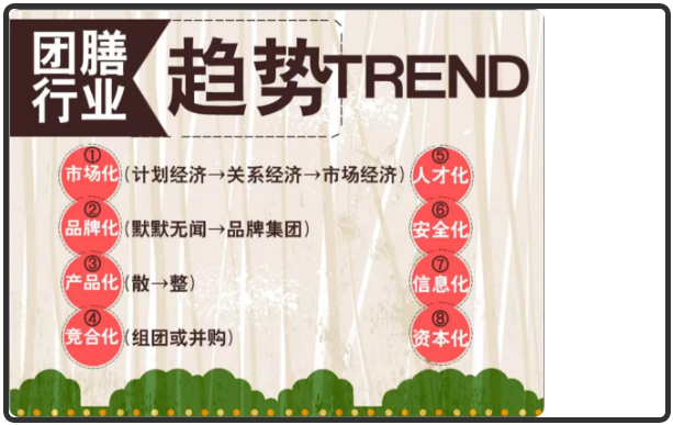 而根据发达国家的团餐市场经验,市场份额大多集中在大型团餐企业手中。比如,美国团餐市场集中度是80%,日韩是60%。相比之下,中国团餐市场95%的份额还在个体经营者和中小企业手中。资源分散、集中度很低,中国团餐至今还属于小而分散的“蚂蚁市场”。因此,未来的3到5年内,传统团餐的经营模式,势必将会进行迭代升级。转入品牌餐饮经营化、美食广场模式集成化等方向发展。