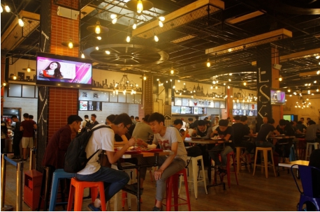 其实,早在2017年,各大高校的“高颜值”食堂就已引起了大家的讨论。不同于以往简陋装修、环境嘈杂、菜肴口味长期被diss的情况,一批装修个性化、档口品牌化、服务标准化的食堂在高校陆续出现。其菜肴口味升级的同时,食堂也渐渐变成师生自习、小组讨论、举办活动的理想之所。更有甚者,食堂的二层、三层改建出图书馆、超市、健身房等,整个就餐场所演化成为一个综合体中的美食聚集地,俨然就像Shopping Mall中的美食广场。