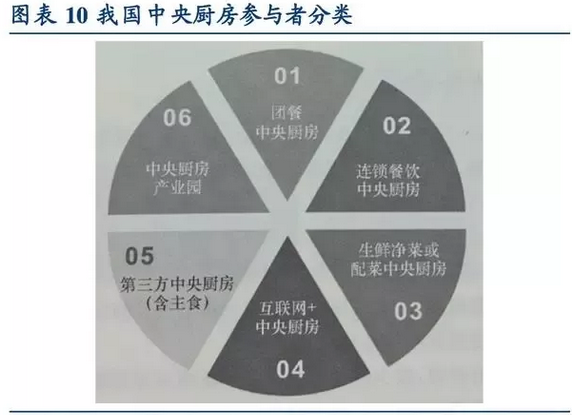 舶来引入的中央厨房概念,在国外通常是由连锁餐饮企业建立的、直接为餐饮企业服务的。但我国行业发展虽较晚,但随着市场竞争环境的快速变化,中央厨房的经营早已不局限于餐饮,市场参与者更加多样化,来自餐饮、零售、互联网等行业不同背景的各方纷纷着手建设中央厨房。经梳理,目前我国中央厨房参与者大致分为以下几类: