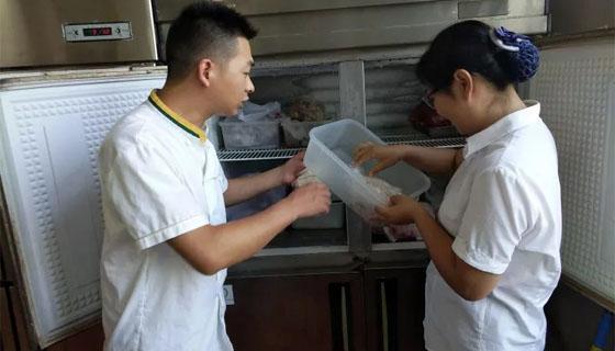 采购食品,认真查验生产日期、使用期限及菜品的新鲜程度,坚持“货比三家”的原则,精心选购新鲜、健康、安全的蔬菜、粮油和肉蛋等原材料,坚决杜绝腐烂变质食品或不新鲜蔬菜进入食堂。生、熟食品分开存放,避免交叉感染细菌滋生。