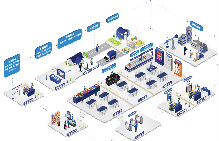 满客宝智慧食堂解决方案是一套标准化的团餐信息化解决方案,涉及前端就餐管理、后厨管理、食堂流程管理、ERP管理、智能硬件、移动支付、人脸支付、云存储、大数据等个方面,可以实现从采购、售卖、经营分析等全流程为食堂提供信息化服务。