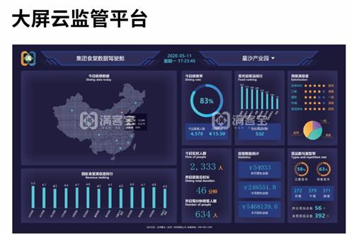 同时在集团端,集团层面可以通过大数据平台随时看到所有食堂的运营情况,比如三一重工集团全国18个园区智慧食堂打造完成以后,通过满客宝智慧食堂管理系统,集团食堂还可看到每个食堂的运营情况、具体数据,实现对集团所有食堂的整体监督及运营管理,帮助每个园区食堂合理运营。