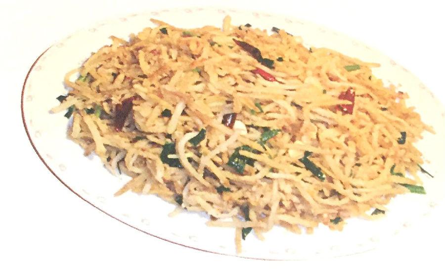 主料土豆1.5元/斤× 10斤=15元去皮擦丝投净水控1富强粉1.2元/斤×3斤=3.6元I中细玉米面!.2元/斤×1斤=1.2元调料精盐1元/斤×0.08斤-0.08元;拌匀后蒸熟取色拉油、干辣椒、姜丝、蒜片、香葱、盐、鸡精等共计5元炒制而成