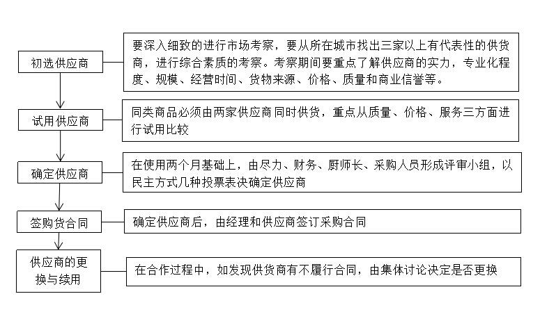 对于原材料供应商的选择,要按照工作程序机体讨论确定,具体程序如下所示。
