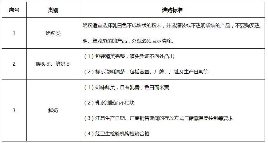 奶类产品的选购标准如表所示