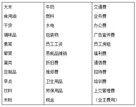 下表中列出了食堂经营过程中发生的主要成本费用。