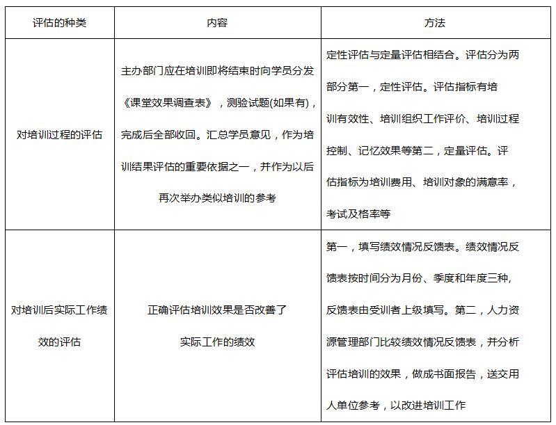 下表对培训的基本评估方法做了简要概括。