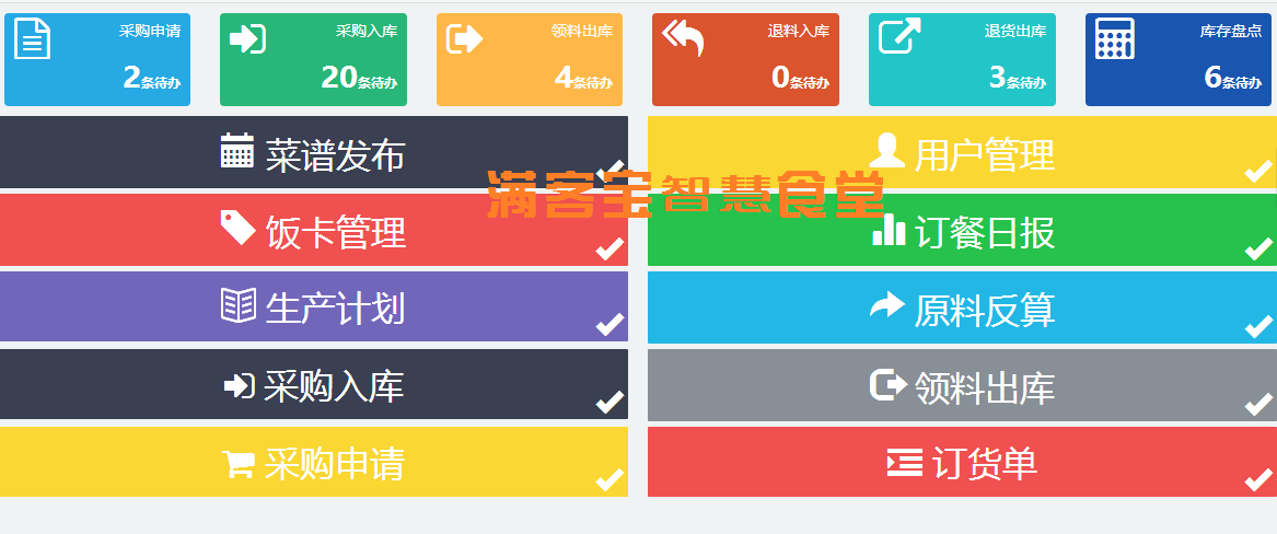 综上所述,满客宝智慧食堂管理软件对食堂运营过程进行细分,量化处理食堂成本控制问题,结合现代化的食堂管理手段将有效加强企事业单位食堂成本控制管理,减少物质和劳动消耗,提高服务质量和水平。