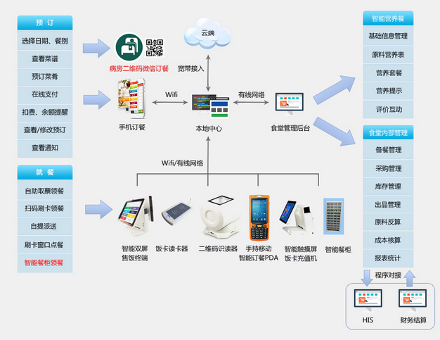 1、多种报餐、就餐方式供患者选择。食堂通过满客宝实现就诊卡与食堂报餐软件之间的衔接,省去以前复杂的人工点餐管理步骤。食堂报餐软件支持多种在线报餐方式,患者可以使用微信、网页、手机app、手机扫描床头二维码等方式进行自助报餐,病人或病人家属提前报餐,医院根据报餐信息,按时送餐,统一派送。想在食堂就餐的患者或家属还可以通过网上订餐,把想吃的饭预订出来,然后用就诊卡去领餐。食堂报餐系统还可以支持PA旗舰厅·(中国区)官方网站-PA PlayAce:手持移动订餐机报餐,医护人员按科室携带手持订餐机,扫描患者床头二维码,后即可根据患者要求报餐。多样的报餐、就餐方式的食堂报餐软件比外卖更具优势,让患者或家属更加喜欢医院食堂。