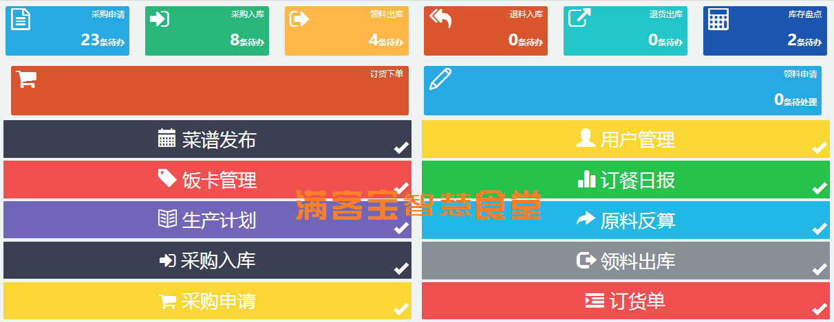 根据《食品卫生法》等法律法规和食品安全形势的需要,食堂结合实际从岗位职责、卫生标准、食品安全责任追究制、食物中毒预案、员工日常行为规范、员工管理制度、食品留样制度等多方面对相关规章制度进行了修改和完善,做出了有章可循、违章必纠,为以量化为核心的管理体系打好基础,并辅以单位食堂管理软件监控食堂运营操作流程。单位食堂管理软件支持食堂采购验收、到加工、半成品到成品、到销售的全过程的质量管控,使食堂各项工作按规定进行。