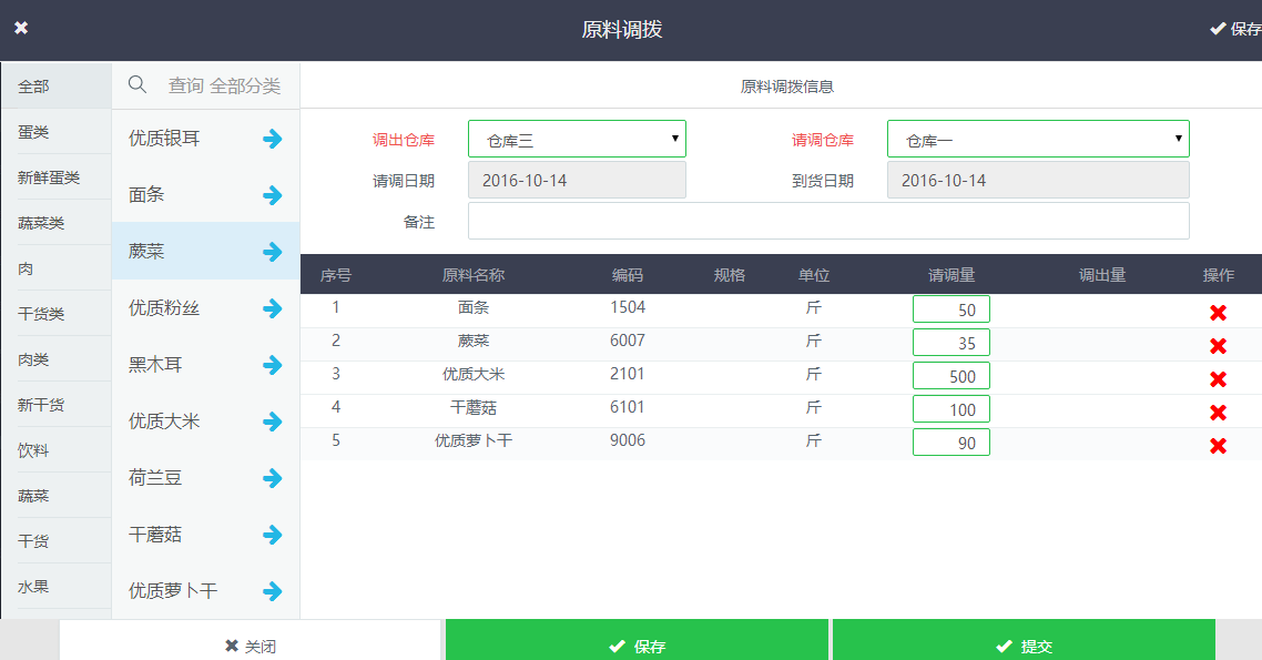 软件可以建立多个仓库,仓库间数据畅通无阻,原料多类型管理,并且分类清晰,简洁而整齐。各仓库之间调拨简单便捷,数据同步展示。