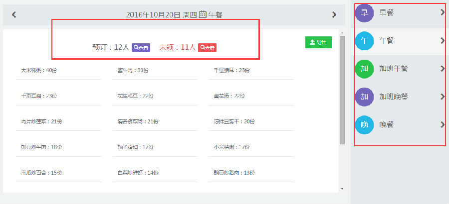 食堂的工作人员可以在系统的后台,对就餐者预订的报表进行查看和导出,并支持快速检索及历史订单记录的查询。给食堂备餐提供精准的数据。与传统食堂管理不同,食堂管理系统可将网上订餐数据自动汇总出所需菜品的数量,系统智能计算出生产这些菜品所需原料的明细,精准的备餐,避免食物的浪费。