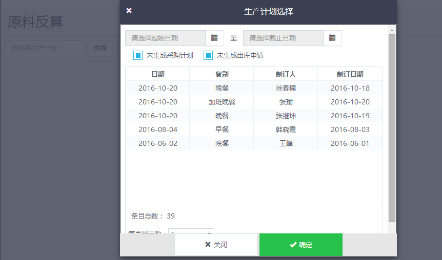 系统根据预订数据信息生成生产计划,再通过生产计划自动进行原料反算,根据反算的数据来准备食材,进行科学合理的备餐。