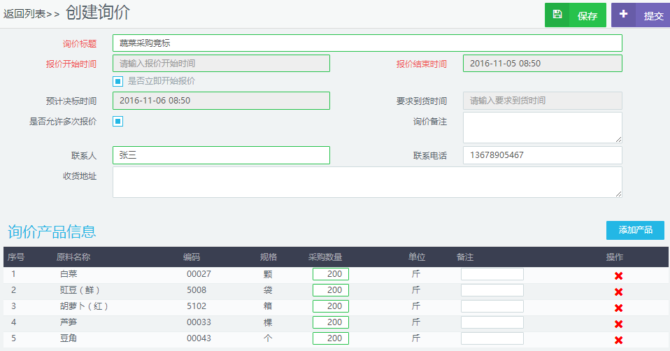 询比价可以设定报价开始、结束时间和询比价决标时间,可以设定是否允许供应商多次报价等。