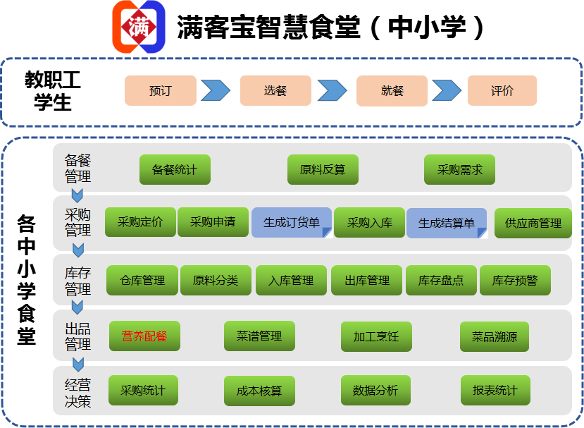 要提高中小学食堂管理水平,最关键的在于转变落后观念,制度与信息化管理系统相结合,为学生提高更为优质的食堂服务,让学生吃得好,吃得营养。