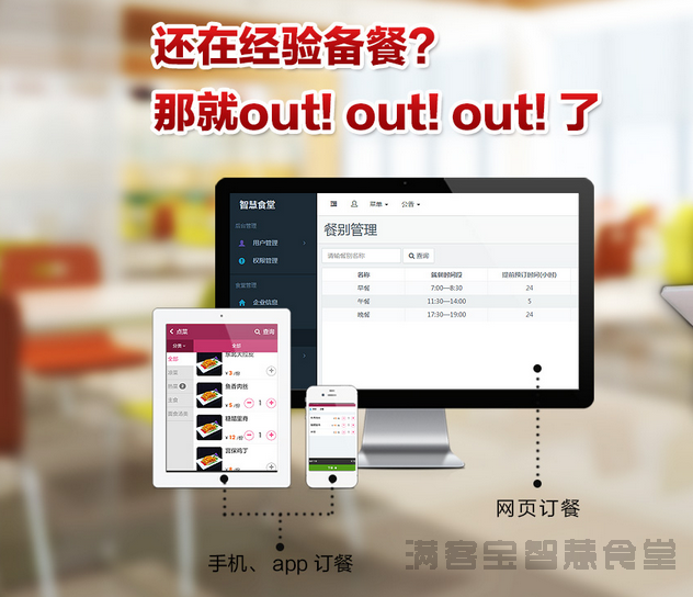 单位员工可以通过手机微信或者APP、网页进行提前订餐、退餐,并选择在线支付方式,订餐后,单位食堂管理系统后台自动统计出订餐的各项数据信息。